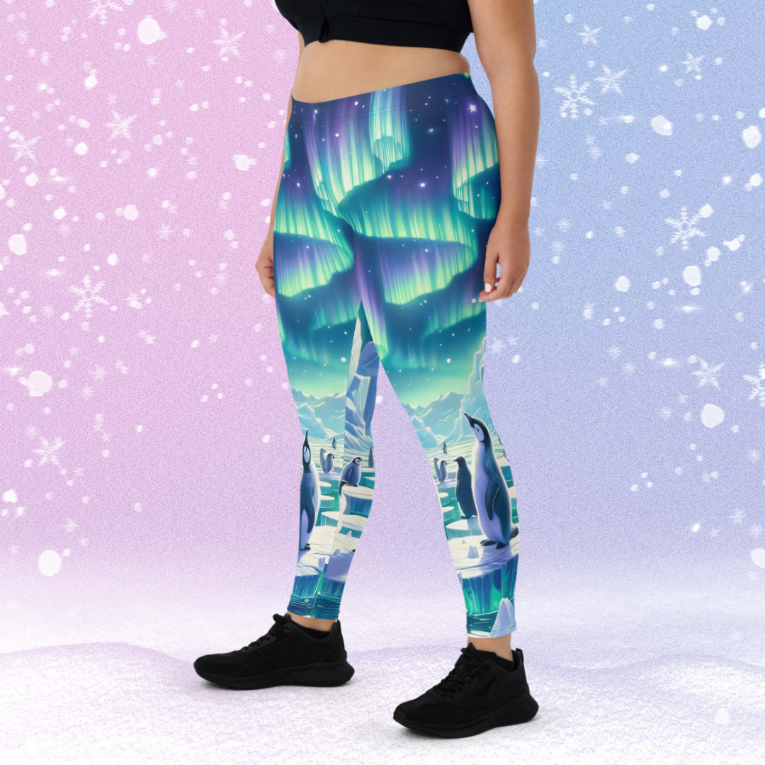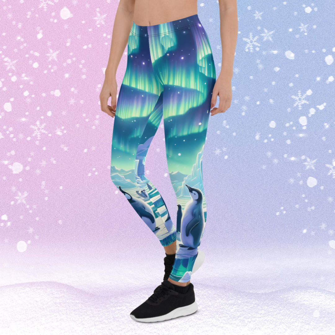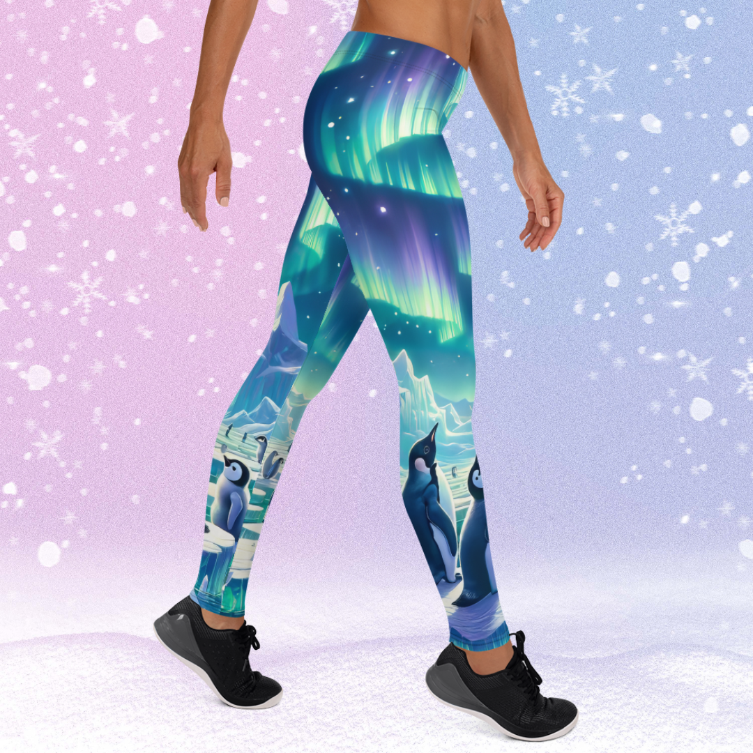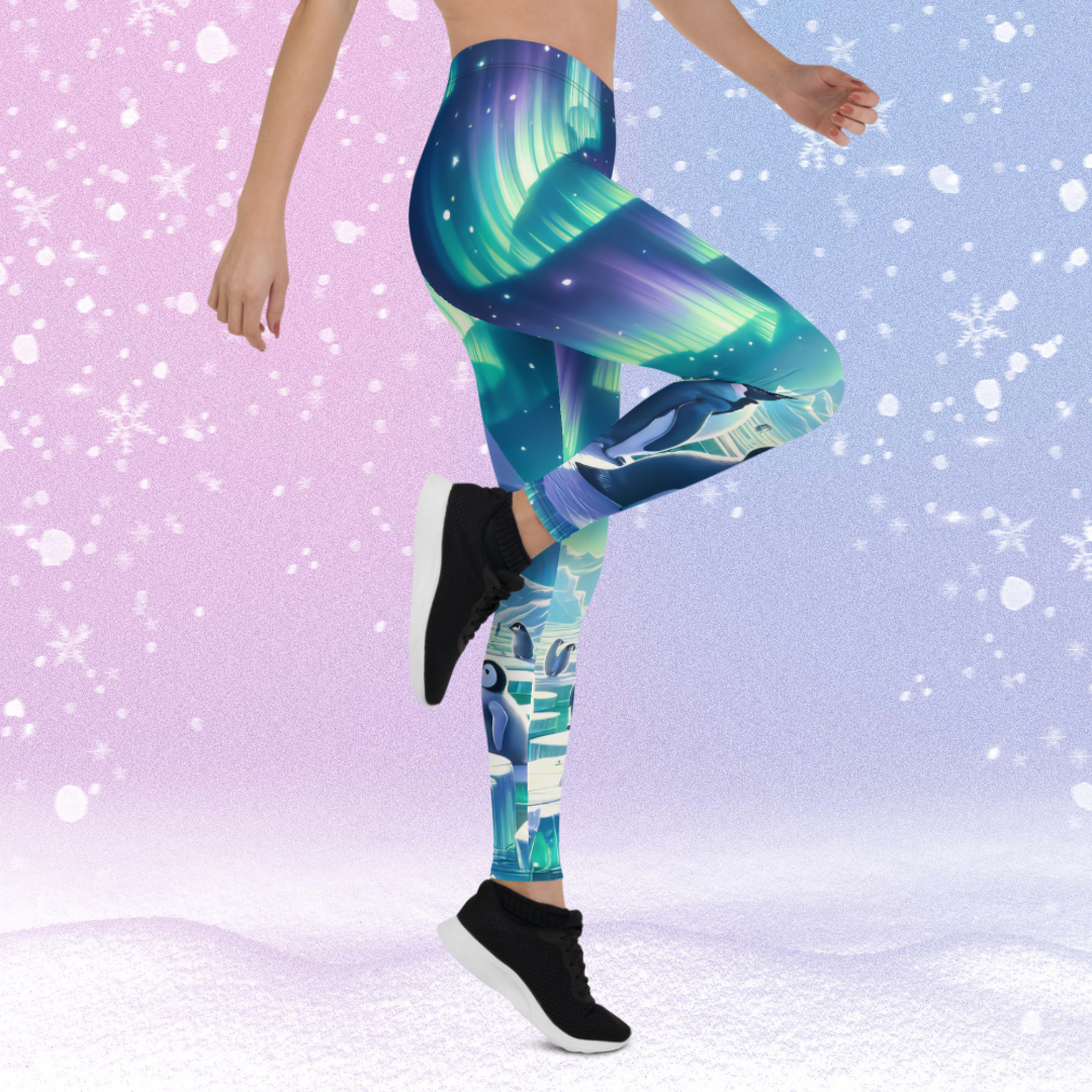 Immerse yourself in the enchanting world of the Arctic with our stunning Arctic Penguins Leggings. These leggings feature a captivating design of adorable penguins playing beneath the mesmerizing glow of the Aurora Borealis. Perfect for expressing your love for penguins and adding a touch of whimsy to your wardrobe, these leggings combine comfort, style, and a touch of magic.
