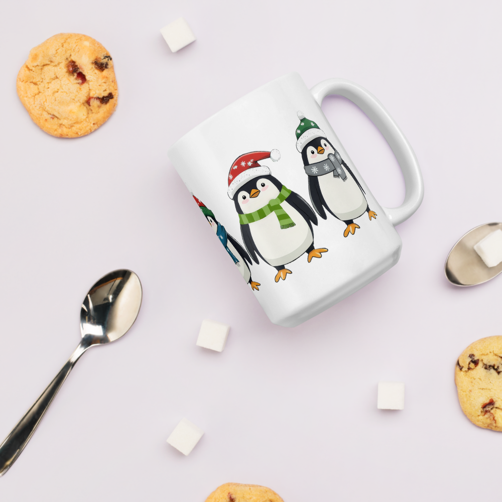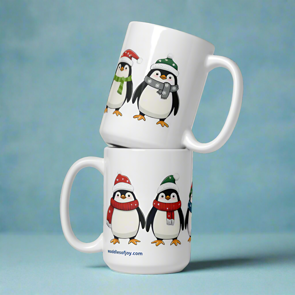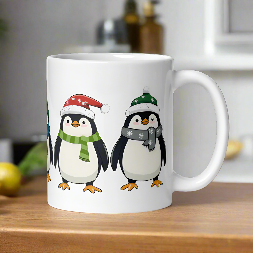Add a touch of holiday cheer to your daily routine with our Festive Penguin Mug! Featuring a delightful parade of penguins decked out in their winter best, this mug is sure to brighten your mornings and warm your heart.