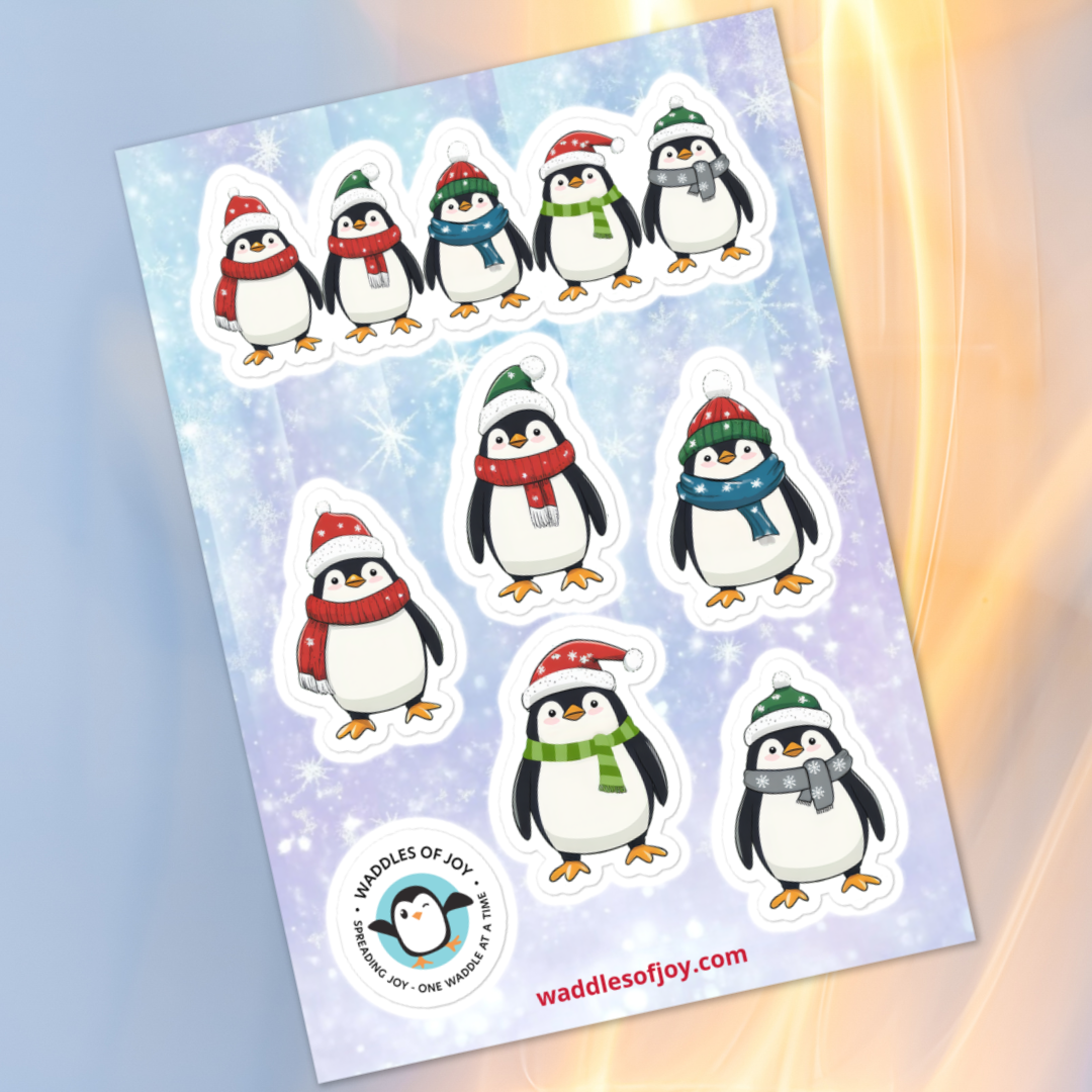 Spread some holiday cheer with our Festive Penguin Sticker Sheet! Featuring seven adorable penguins decked out in their winter finest, these glossy stickers are perfect for adding a touch of personality to your belongings. Decorate your laptop, water bottle, phone case, planner, and more with these delightful designs.