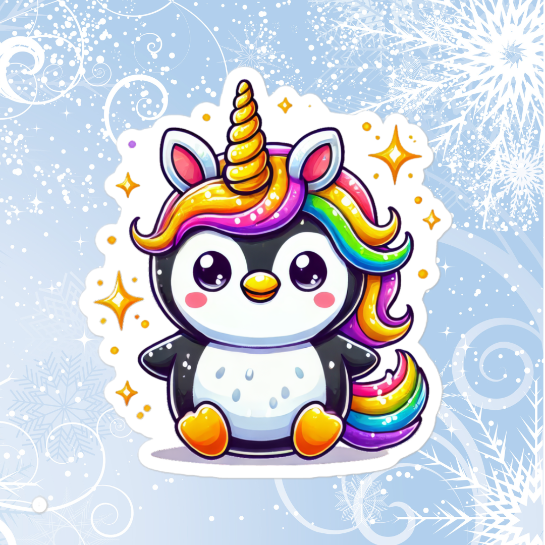 Say hello to your new favorite sticker: the Penguicorn! This chubby-cheeked, rainbow-maned cutie is ready to waddle into your heart (and your laptop, water bottle, phone case—you name it).