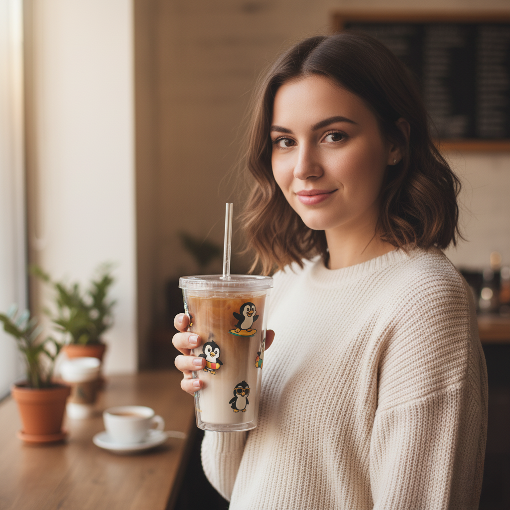 Quench your thirst and add a splash of joy to your day with our adorable Penguin Paradise Tumbler! This double-wall insulated tumbler is your perfect companion for keeping drinks chilled, from energizing morning smoothies to relaxing sunset sips. It comes complete with a secure screw-on lid and a reusable plastic straw, making it ideal for all your on-the-go adventures. The clear body showcases a playful array of penguins enjoying summer fun, enhanced with a light varnish for a subtle texture and fade protection. Our unique "penguiny" art style turns every sip into a delightful interaction! 🐧✨🥤
