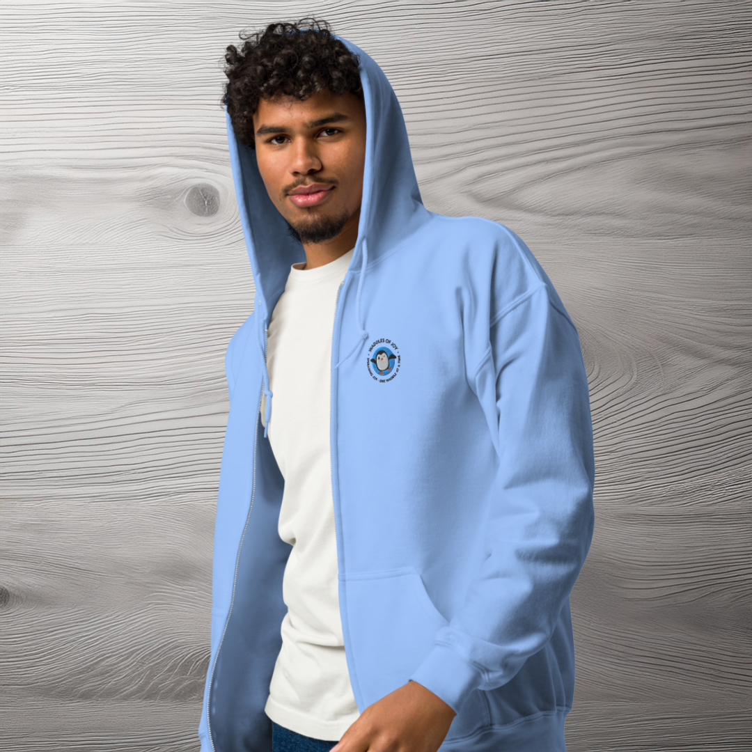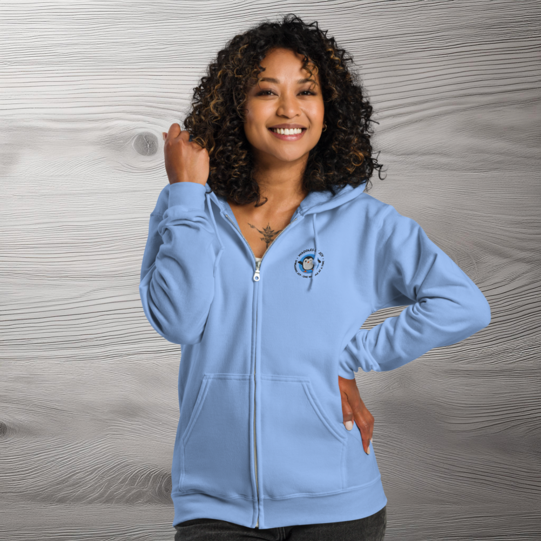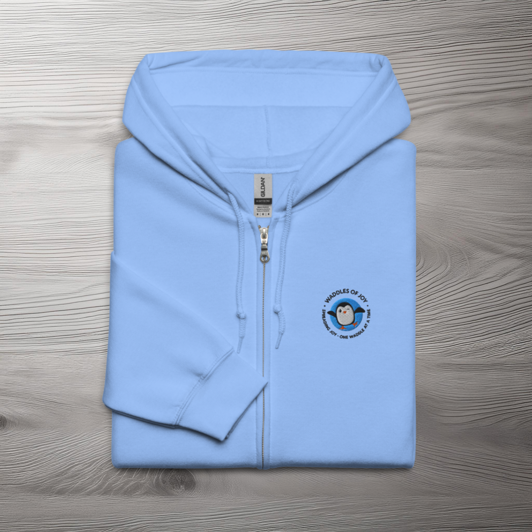 Wrap yourself in comfort and penguin love with our Waddles of Joy Embroidered Zip Hoodie. This classic hoodie features our signature winking penguin logo embroidered on the left chest, adding a touch of personality to your everyday style. Perfect for cozy nights in or outdoor adventures, this hoodie is a must-have for any penguin enthusiast.